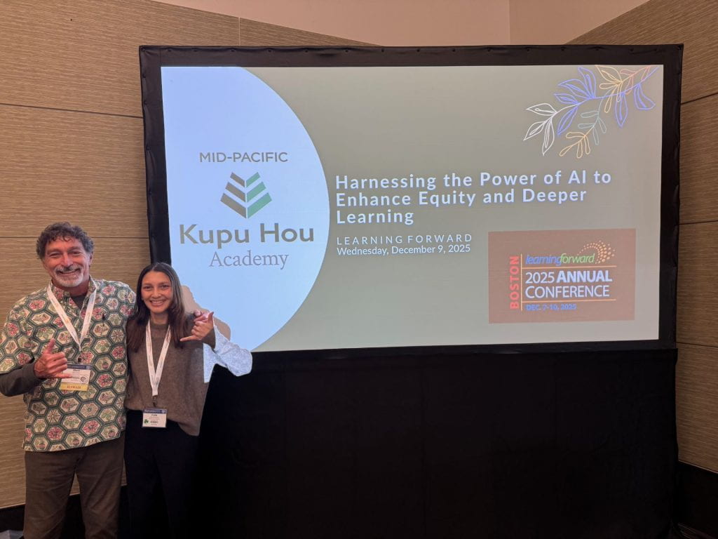 Tuesday morning began with the keynote Pedagogy of Voice: Street Data and the Path to Student Agency from Shane Safir and Sawsan Jaber. Their work reframed data as something gathered through listening rather than extracted through dashboards. Student voice, they argued, is not feedback—it is access to power, belonging, and authorship. Crucially, they emphasized symmetry: if we want agency for students, adults must experience it as well. That notion of symmetry carried into Tuesday morning’s session, Leading for Deeper Learning, led by Melissa Daniels and Stacy Lopez from High Tech High GSE. They challenged leaders to examine whether adult learning truly mirrors the inquiry, collaboration, and reflection we value for students. School culture, they reminded us, is shaped less by vision statements and more by the daily experiences people are invited into. Tuesday afternoon brought us closer to home with Transform Your School Through Collective Action, led by Joe Passino, principal of Princess Keʻelikōlani Middle School in Honolulu, and Bette Moreno. We were proud to hear how their leadership moves—high expectations paired with high support, visible collaboration, and shared responsibility—are shaping student commitment and learning. Their work made clear that transformation is not driven by heroics, but by culture built collectively over time.